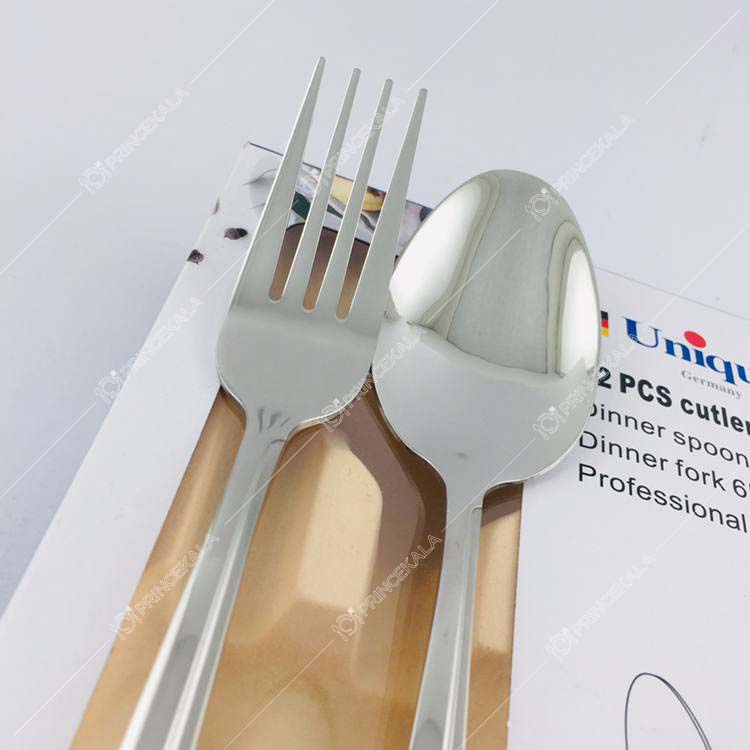 - مواد ساخت باکیفیت: قاشق و چنگال از فولاد ضد زنگ 18/10 ساخته شدهاند که مقاومت در برابر زنگزدگی و خوردگی را تضمین میکند.
